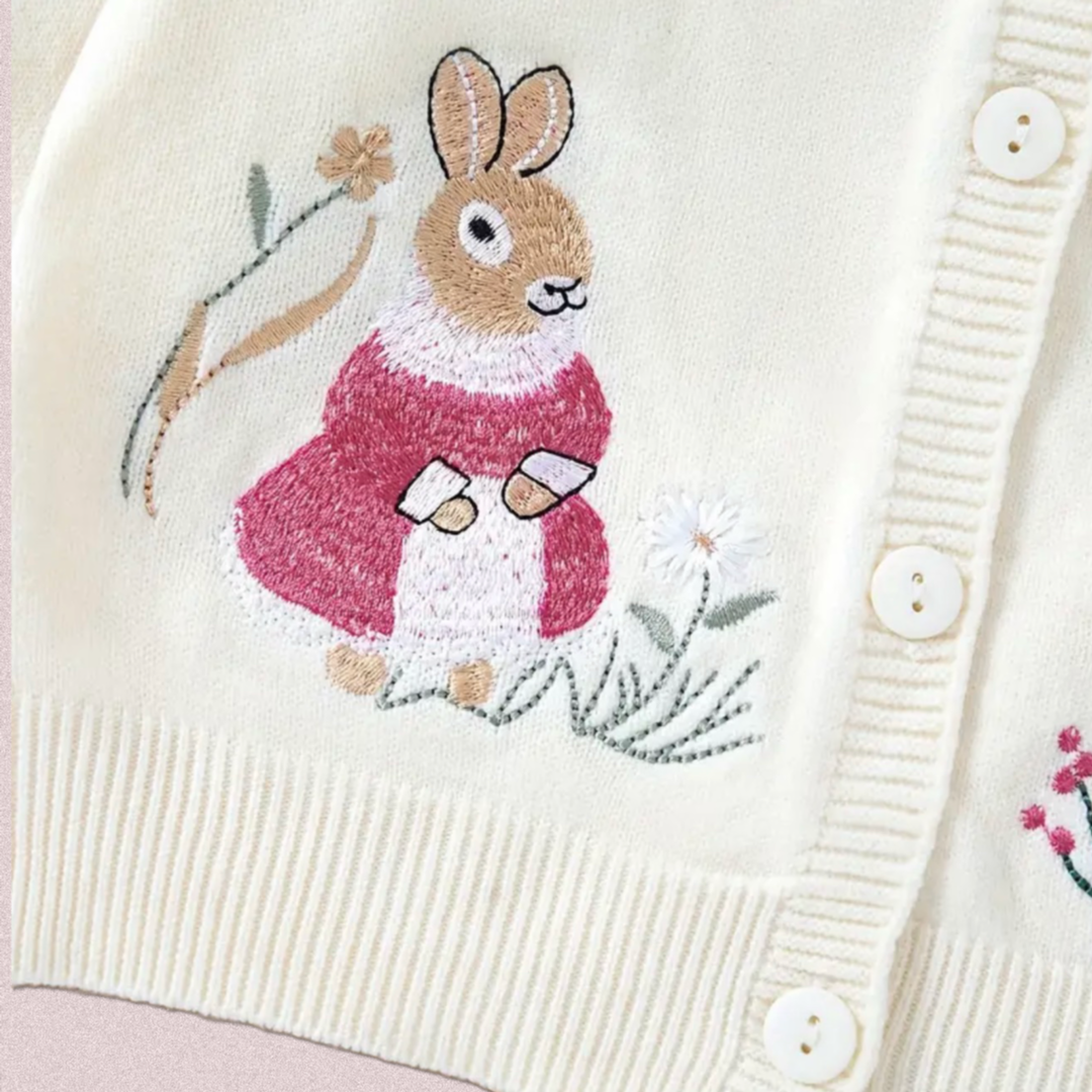 كارديجان أطفال مطرز برسومات أرنب كريمي