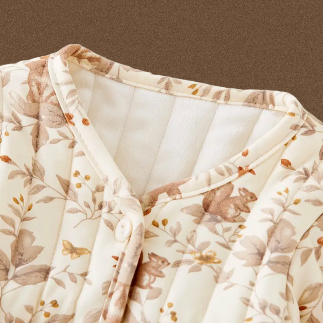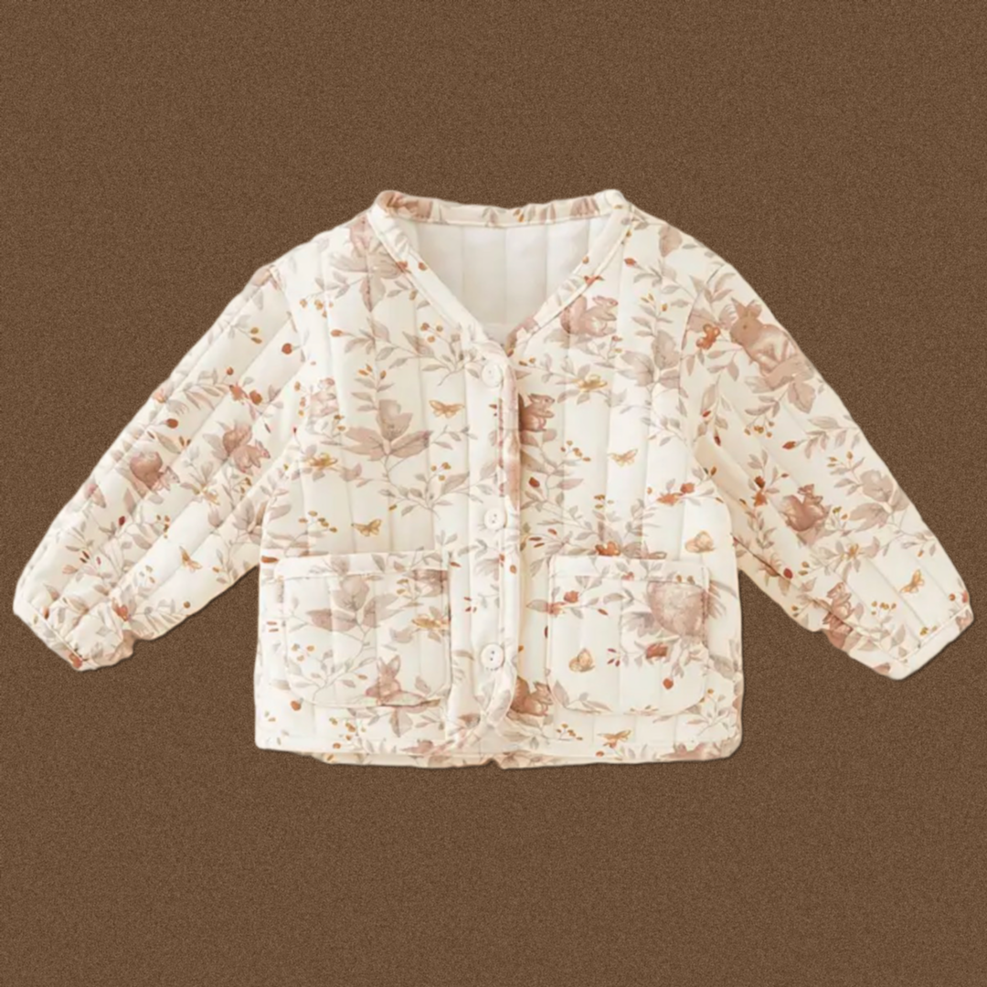 جاكيت أطفال مبطن ناعم بنقشة زهور رقيقة وبطانة داخلية من الصوف الدافئ - مريح وخفيف الوزن ومثالي للأيام الباردة 🌸
