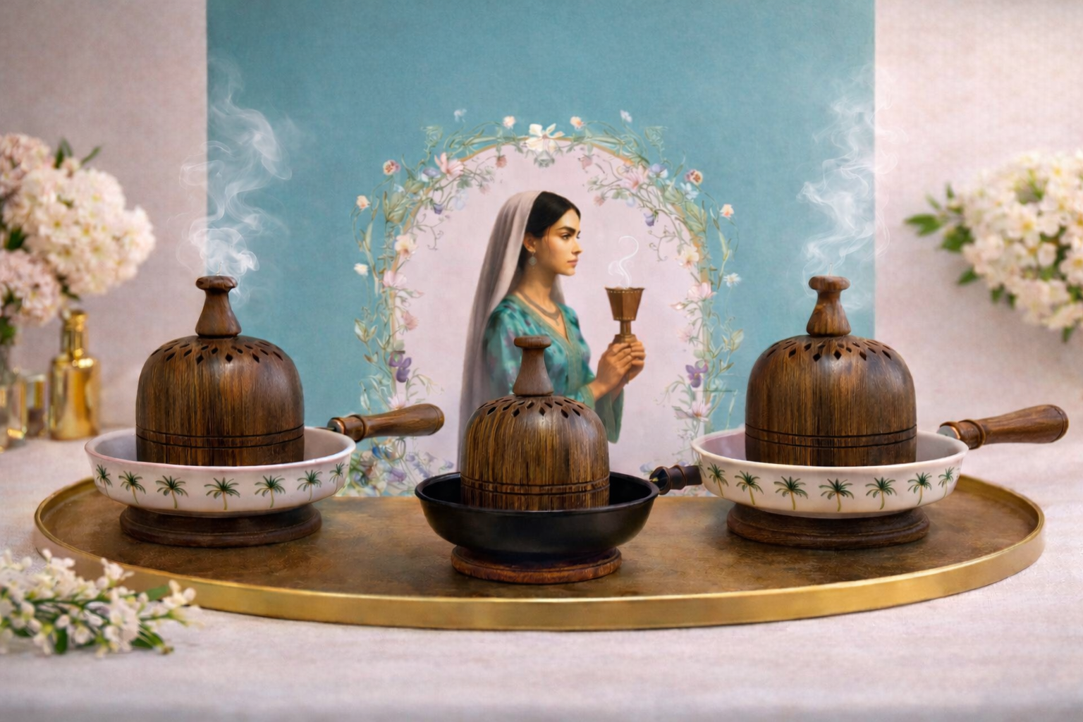 مبخرة أنيقة مصنوعة من الخشب الطبيعي بتصميم يجمع بين التراث والفخامة.
