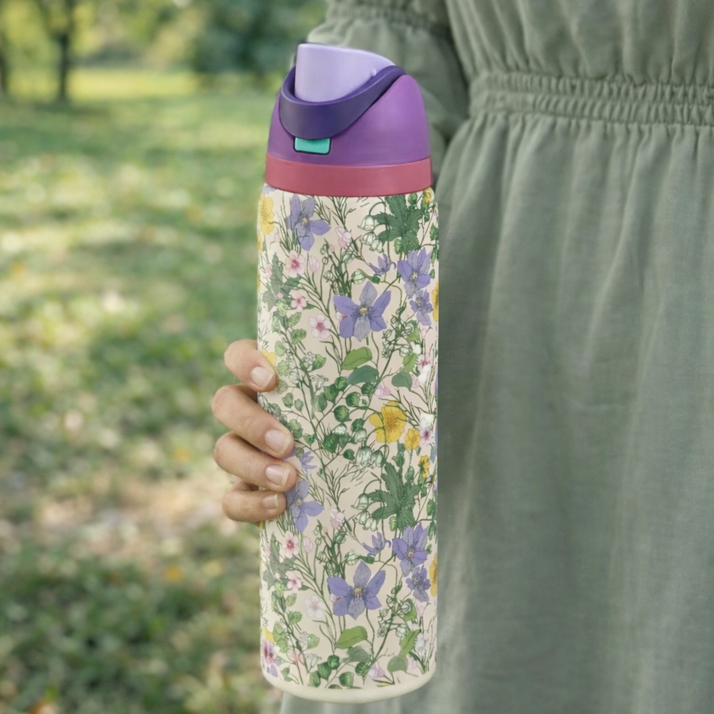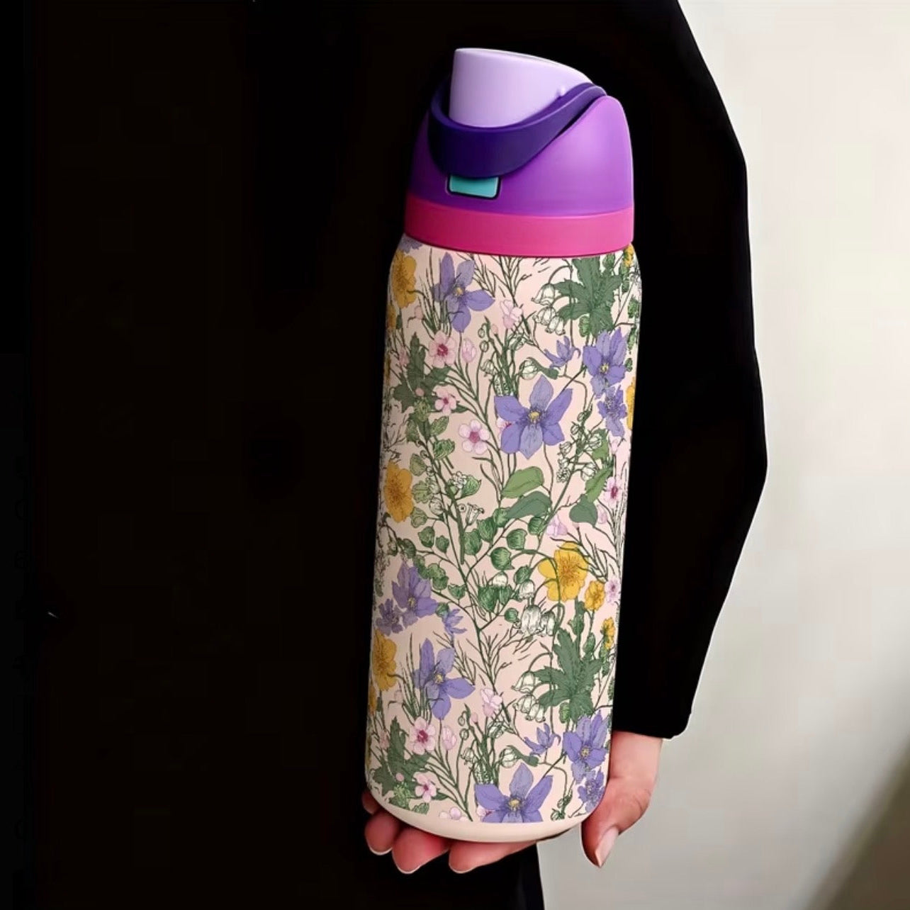 زجاجة ذات مقبض ملون مزينة بالزهور