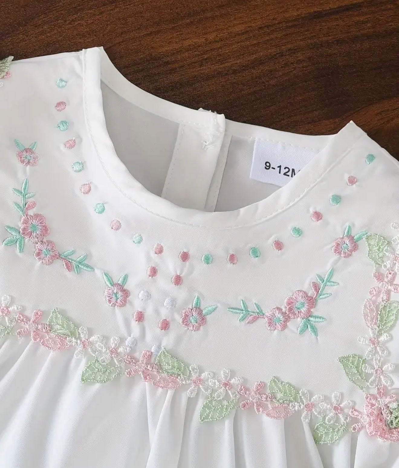 فستان ميدي خفيف مصنوع من البوليستر للفتيات بأكمام قصيرة وتفاصيل دانتيل بسيطة.