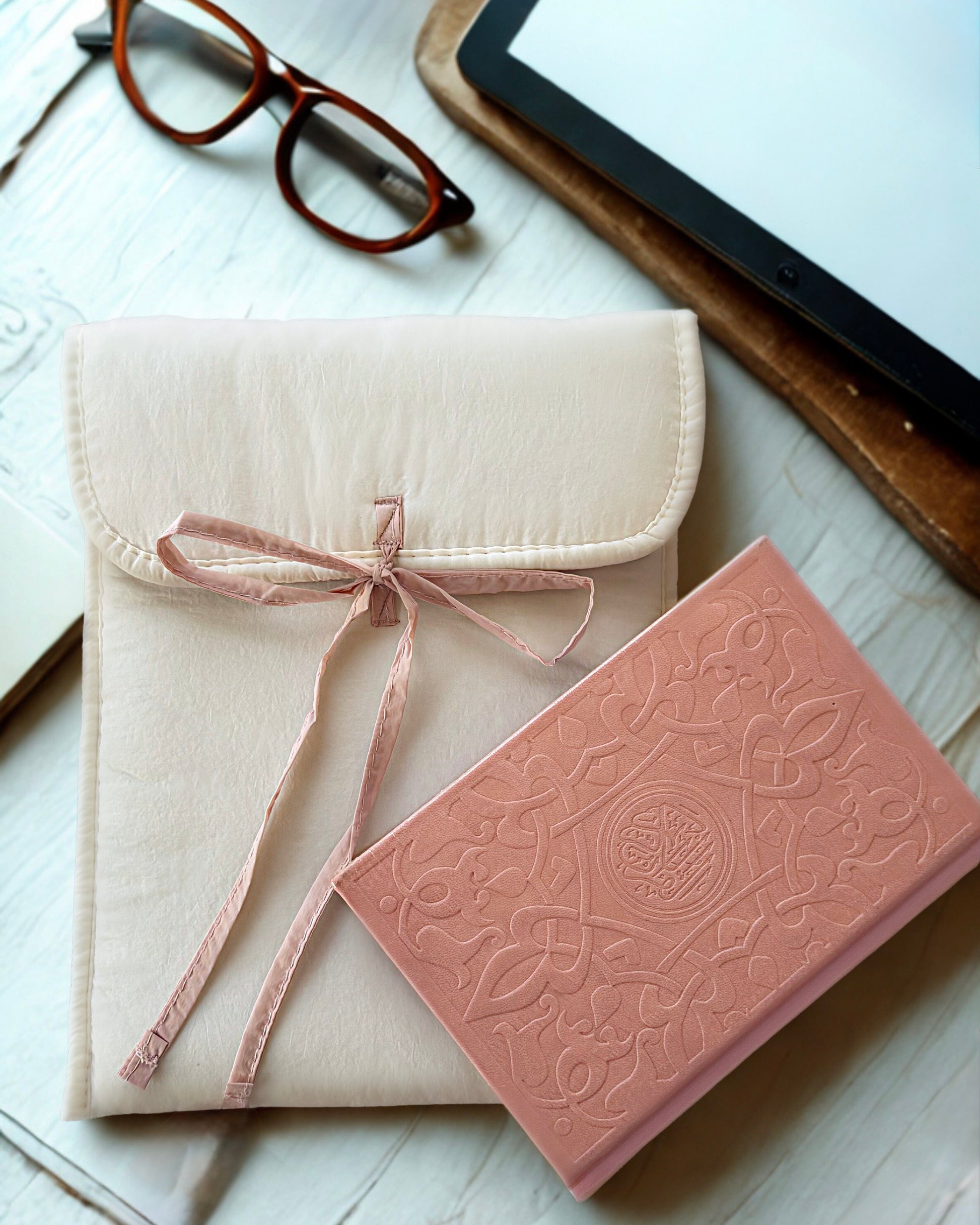 مجموعة مختارة بعناية فائقة تضم المصحف الشريف مع غلاف واقٍ، مصممة لحفظ المصحف وحمله بأناقة أينما ذهبت.