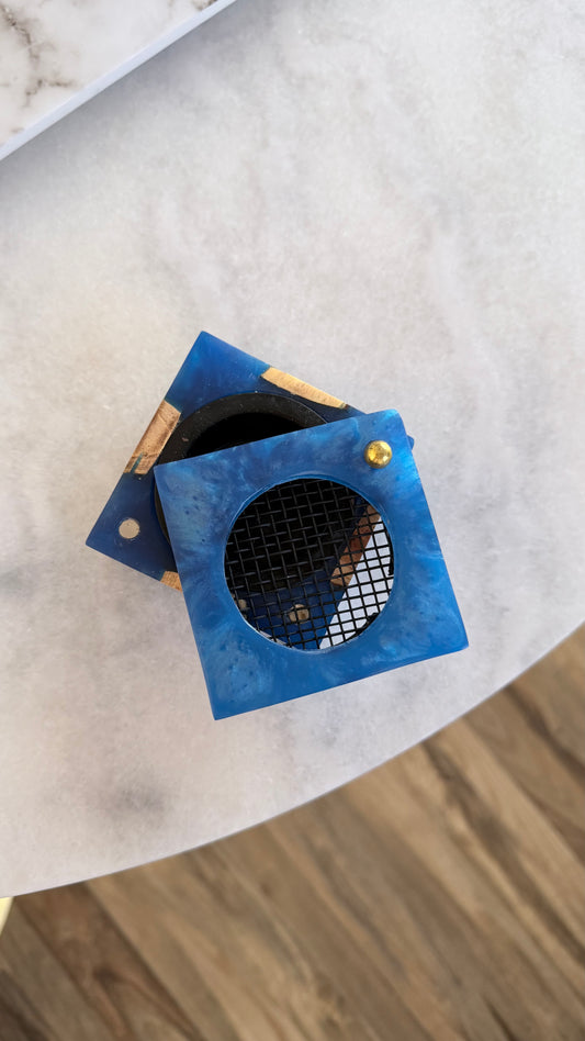Square Travel size Resin & Wood Handmade Mubkhar (BLUE)