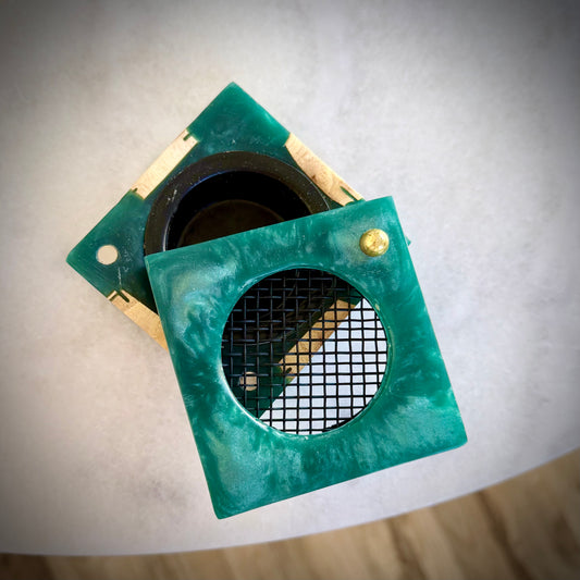 Square Travel size Resin & Wood Handmade Mubkhar (Green)