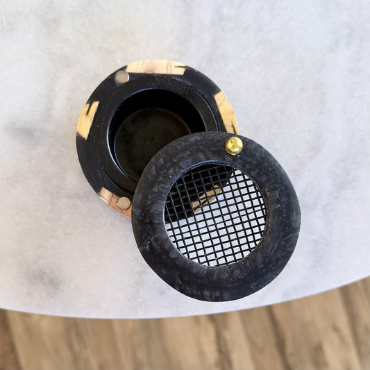 Round Travel size Resin & Wood Handmade Mubkhar (Black)